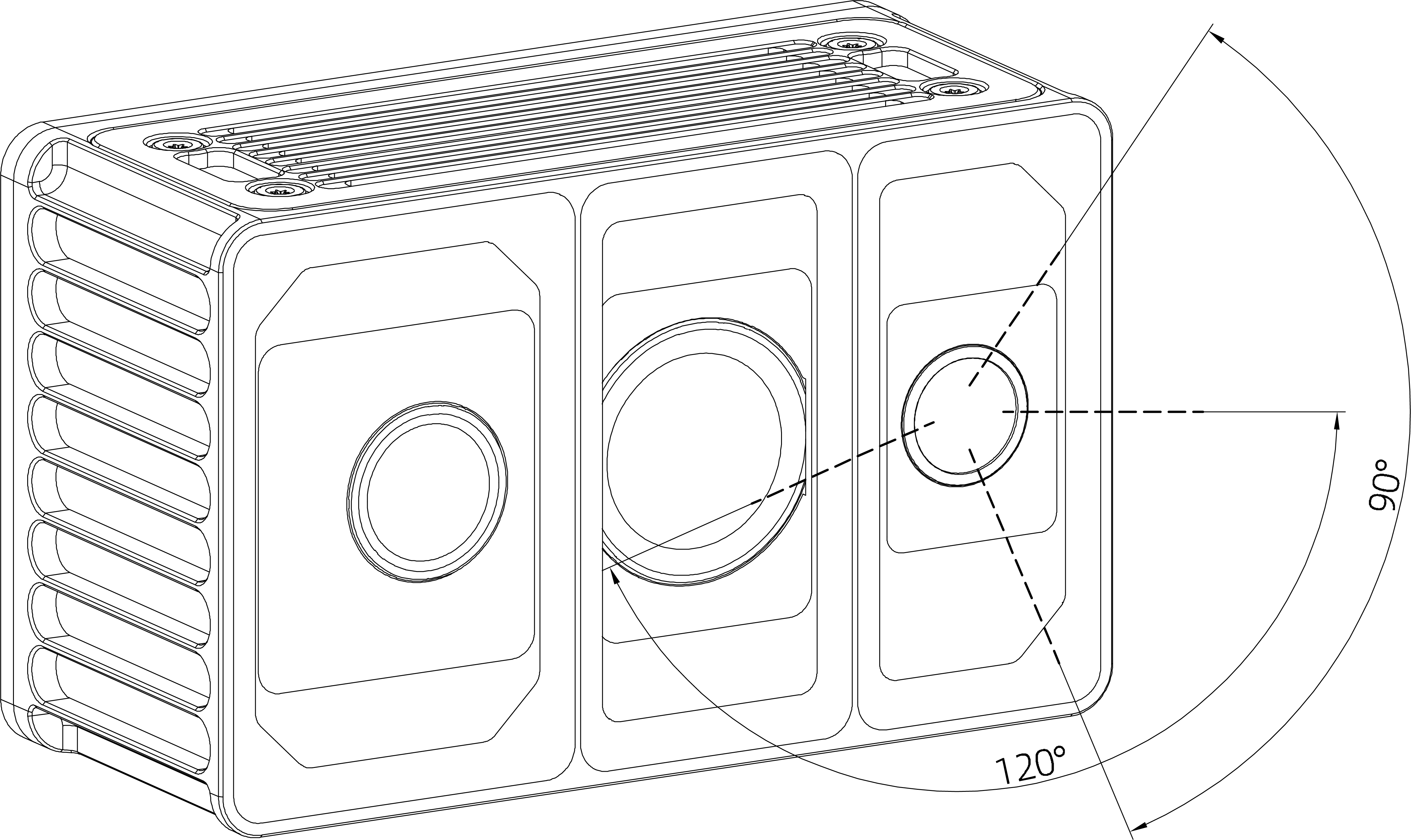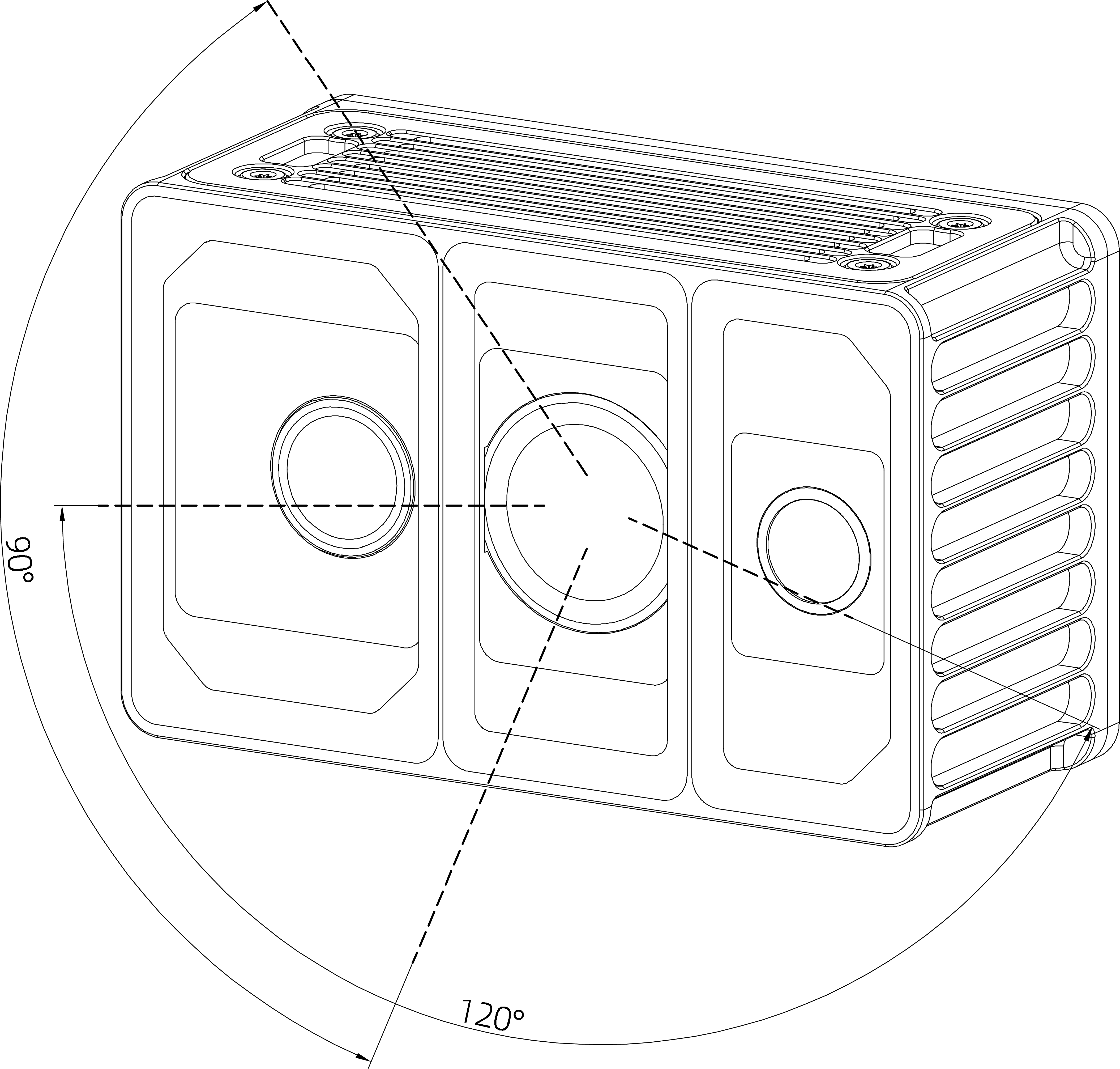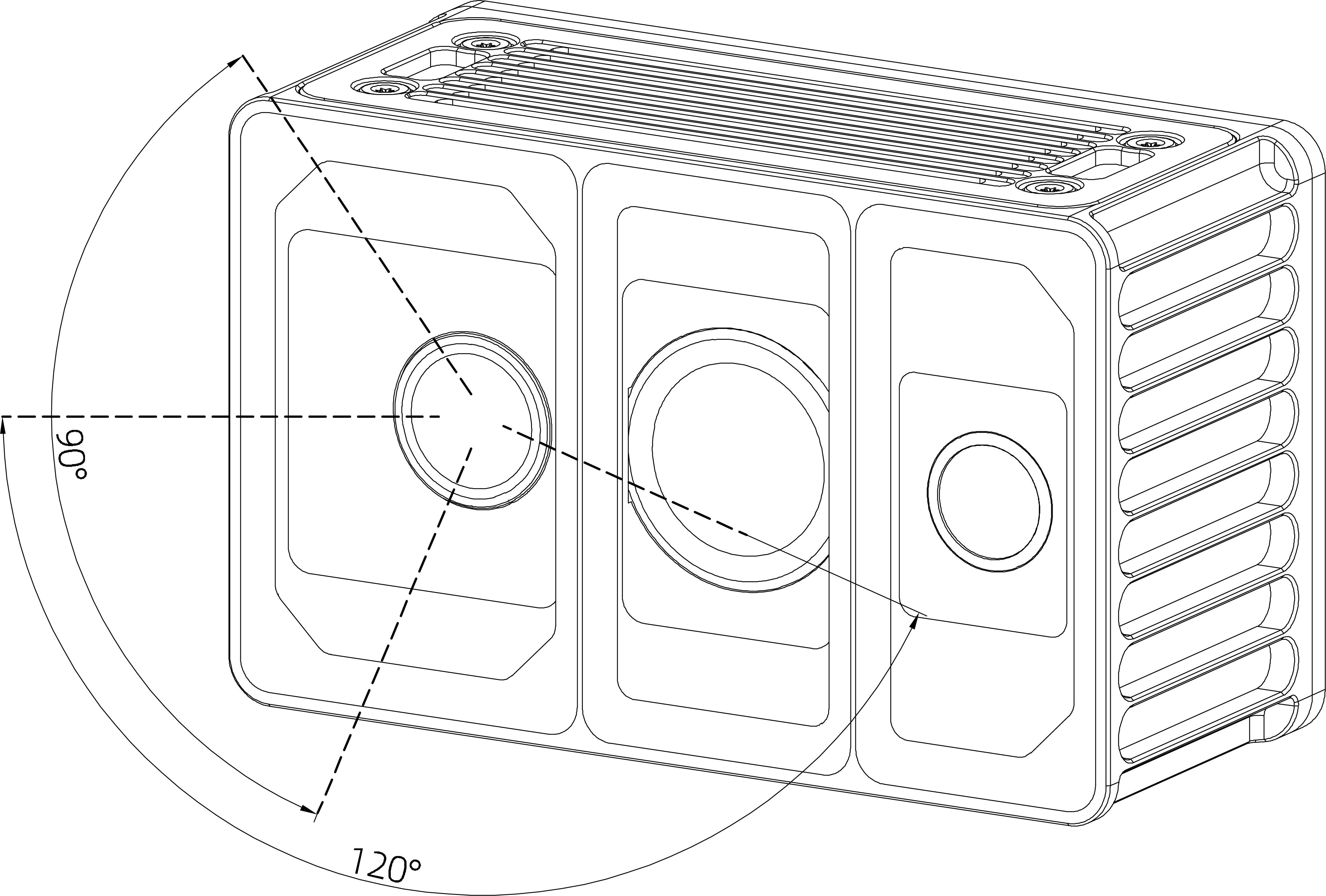 Odin1的深度FOV为大约120°H × 90°V,如下图所示。安装时请注意FOV有效范围,避免遮挡FOV区域。