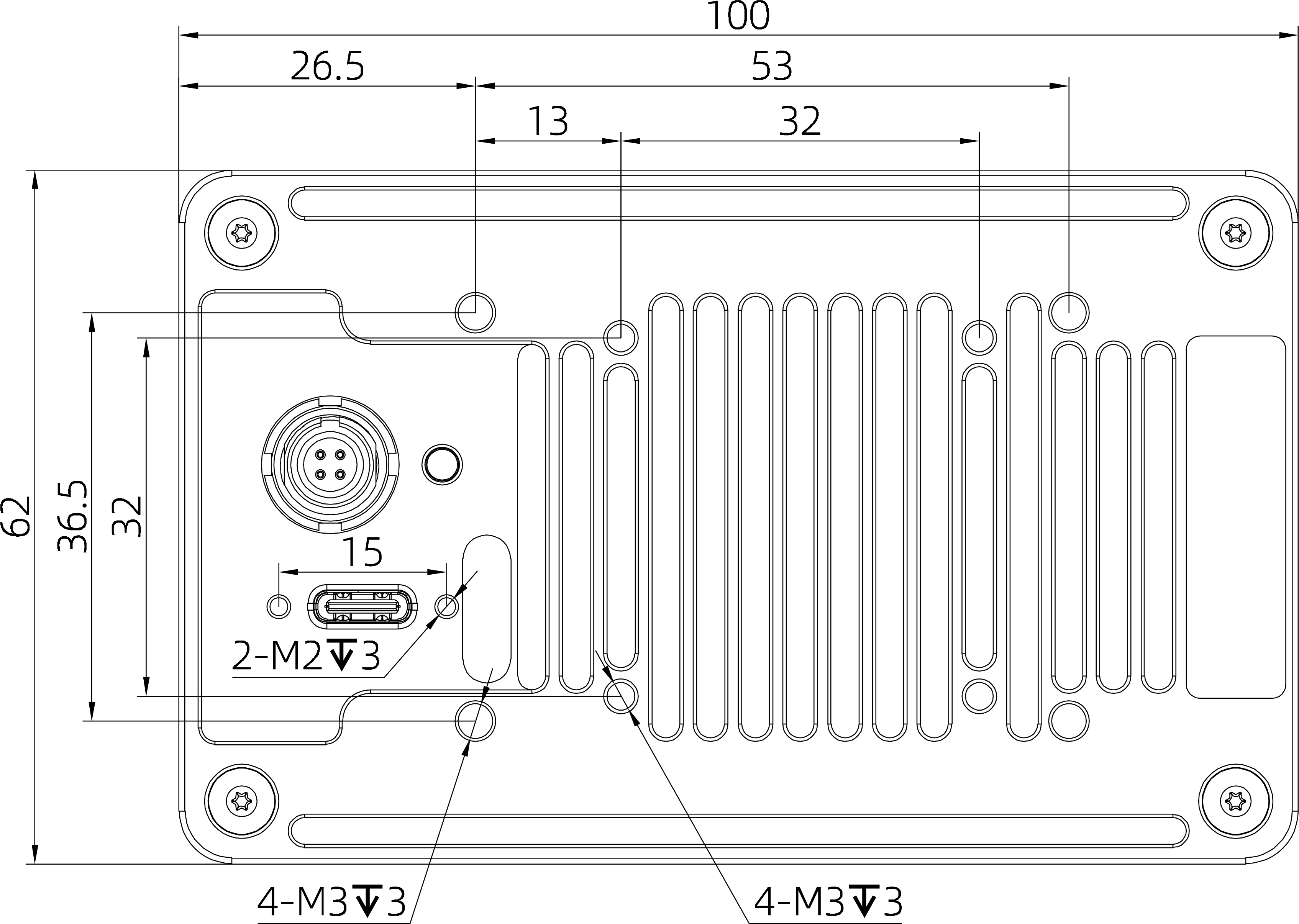 - 设备的机身(尤其是散热外壳和光学窗口)不能承受额外重量或压力(例如在其上堆放物品或用力按压)。请仅通过设计好的安装接口(如底部的螺纹孔)进行固定。
